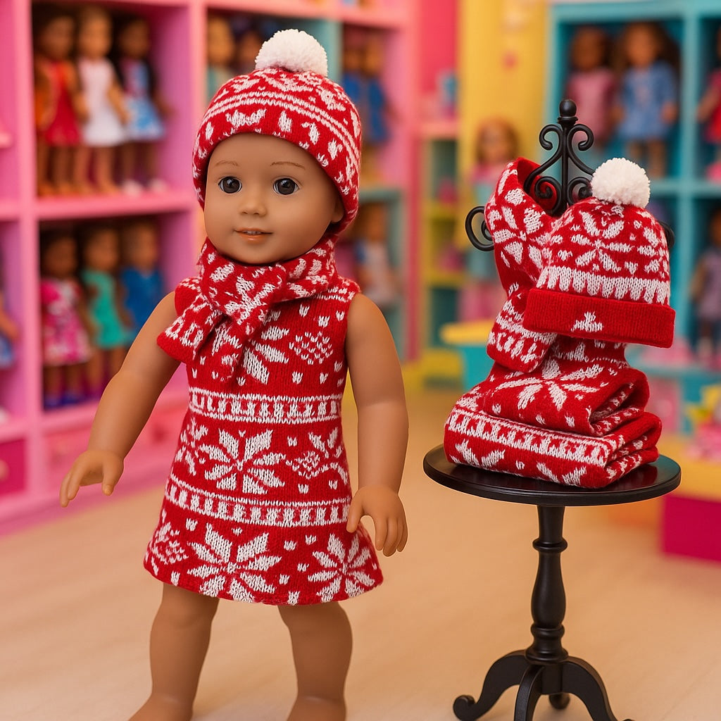 Brown/White Plaid Knit Suit Outfit 18inch Doll w/Satin Trimmed Ballet Shoes (Wig Not Included)