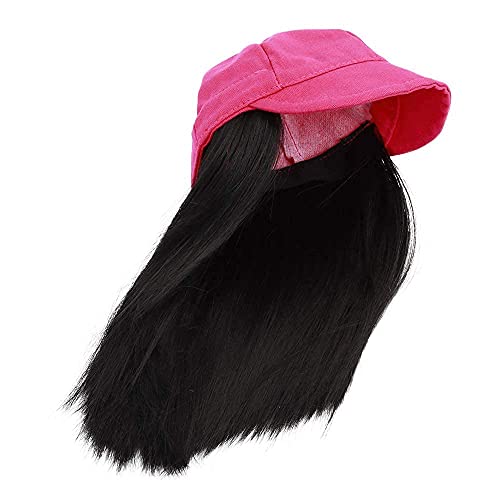 - FEATURES: Hot Pink Baseball Cap w/Black Straight Hair Attached